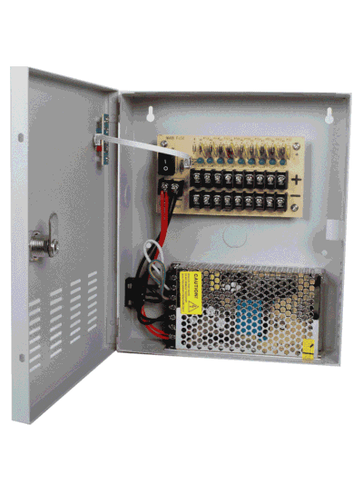 La fuente modelo PSU1210D9 mas que una fuente es un distribuidor de energía centralizado con carcasa de metal robusta con ranuras para su ventilación sin dejar a un lado la estética, la caja tiene protección anti estática y anti-interferencia, alimenta 9 cámaras de cctv con indicador de salida LED individual proporcionando la tensión de salida de 12V AC, cada salida está protegida de forma independiente por un fusible de cerámica o PTC que protege nuestras cámaras.