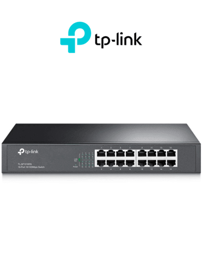 TP-LINK TL-SF1016DS - Switch no administrable con 16 puertos Fast Ethernet, diseñado para montaje en rack o en escritorio.