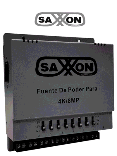 SAXXON ENERGIA PSU1208A-4K - Fuente de poder Regulable Metálica/ Conexión de Hasta 8 Canales/ Voltaje de Ajuste 12V 13V o 15V cc/ Salida de Hasta 5 Amp en los 4 Canales/ Instalación en Pared