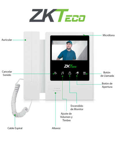 ZKTECO VDPIB4 - Monitor LCD de 4.3 pulgadas para Videoportero Analógico / Conexión mediante 4 Hilos / Resolución 480*272 píxeles / Imagen Nítida / Botón de No Molestar
