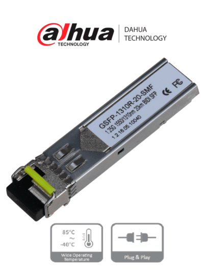 DAHUA GSFP1310R20SMF- MODULO FIBRA OPTICA SFP MONOMODO/ TRASMISION BIDIRECCIONAL/ CONECTOR LC/ HASTA 20KM/TX 1550nm,RX 1310nm