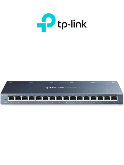 Switch Gigabit TP-Link No administrable (TL-SG116) de (16) puertos 10/100/1000 Mbps, para escritorio y montaje en pared, gabinete metálico. Plug and play, no se necesita configuración. Tecnología Green Ethernet ahorra energía.