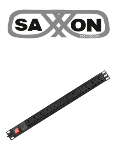SAXXON SXPDU12P16A- Barra PDU con 12 Contactos Individuales / 16A / 1UR / Protección contra rayos / Aleación de Aluminio / #TVCSAX