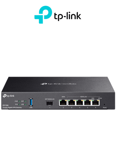 TP-LINK ER7206- Router Omada VPN SDN Multi-WAN Gigabit con 1 puerto WAN SFP y 1 puerto WAN RJ45 Gigabit, 2 LAN RJ45 Gigabit y 2 configurables LAN/WAN. Hasta 150,000 sesiones concurrentes y administración centralizada Omada.