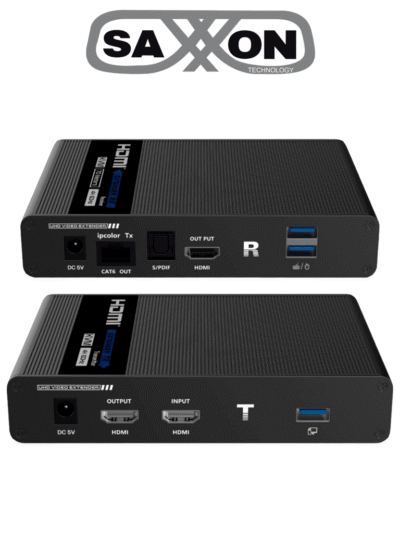 SAXXON LKV676KVM-PI - Kit extensor de video HDMI IPCOLOR/ Resolucion 4K @ 30 Hz/ Hasta 70 metros en 1080P y 40m en 4K con Cat 6/ 6A/ 7/ Cero latencia/ Soporta Teclado Video Mouse/ Soporta HDR/ ARC