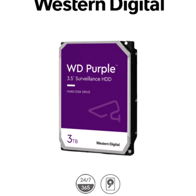 WESTERN WD34PURZ - Disco Duro de 3TB Purple/ Especial para Videovigilancia/ Trabajo 24/7/ Interface: Sata 6 Gb/s/ Hasta 64 Cámaras/ Hasta 16 Bahías de Discos Duros/ 3 Años de Garantía / 6Gb/s
