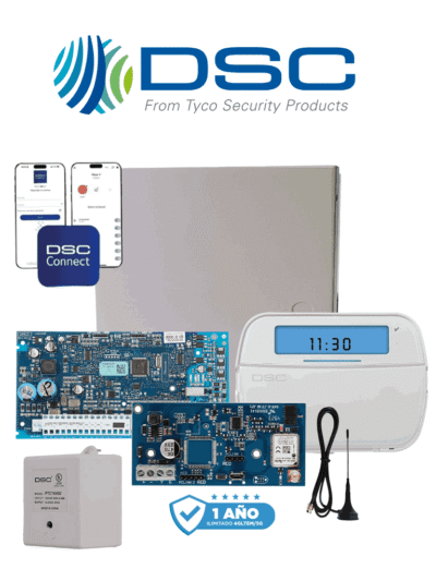 DSC NEO-LCD-SIRENA-IP-SB- Paquete SERIE NEO con panel HS2032 de 8 zonas expandible a 32, Teclado LCD HS2LCDN con Sirena de 30W y su gabinete incluye Comunicador IP TL280E . Sensor PIR Cableado LC200, 2 SM433TQW , Transformador y Gabinete