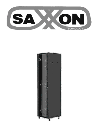SAXXON SXR37U6637S - Gabinete de Piso color Negro / 37UR / Puerta de Vidrio Templado / Alto 180 cm / Ancho 60 cm / Profundidad 60 cm / Incluye Base con 2 Ventiladores 110V