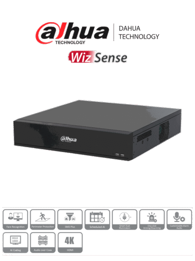 DAHUA DH-XVR7816S-4K-I3 -DVR de 16 Canales 4k/ WizSense/ H.265+/ 8 Bahías de Discos Duros/ +16 Canales IP/ 6 Canales con Reconocimiento Facial/ SMD Plus/ Codificación IA/ IoT & POS/ #XVRPRO/